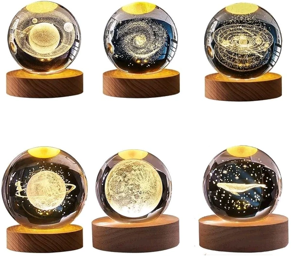 3D Moon Crystal Ball LED Night Light Ball Projection Lamp Planet Model Birthday Christmas Gifts for Boyfriends Husband, Night Light Planet Art Gifts Lamp (Multi Design)